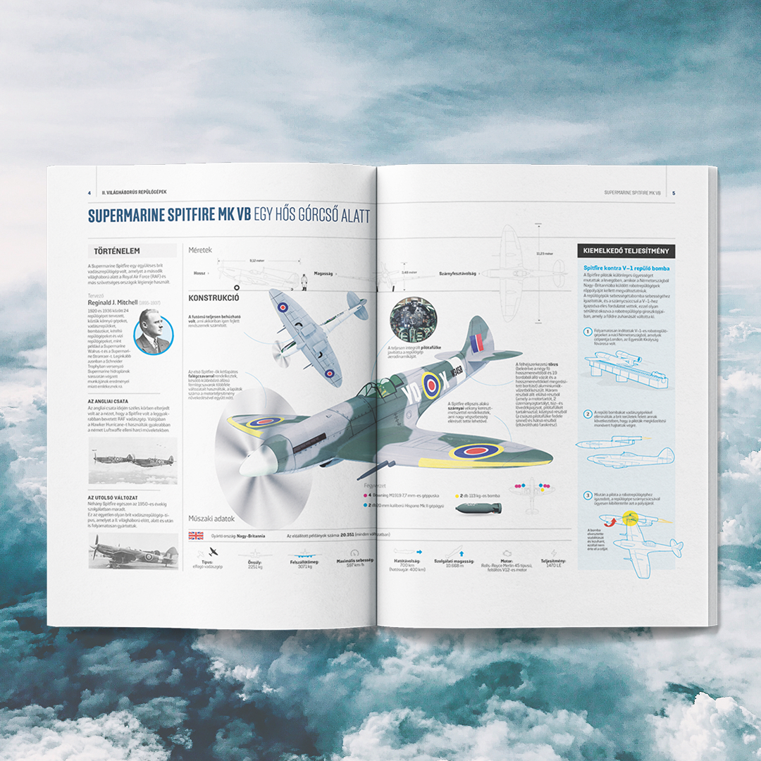 A magazinok részletesen mutatják be a vadászgépeket, legendás pilótáikat, valamint a legnagyobb háború küldetéseit és történeteit gondosan összeállított szövegeken és illusztrációkon ábrázolt adatokon keresztül.